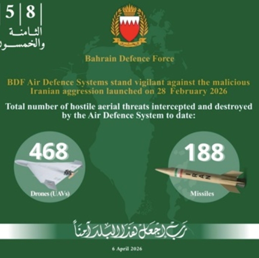മനാമ: ബഹ്റൈനു നേരെയുള്ള ഇറാന്റെ ആക്രമണത്തിന്റെ തുടക്കം മുതല് ഇതുവരെ ബഹ്റൈന് പ്രതിരോധ സേന (ബി.ഡി.എഫ്) ഇറാന്റെ 188 മിസൈലുകളും 468 ഡ്രോണുകളും തടഞ്ഞുനിര്ത്തി തകര്ത്തതായും ഇറാനിയന് ആക്രമണത്തിന്റെ തുടര്ച്ചയെ തുടര്ന്നും തടയുന്നുണ്ടെന്നും ബി.ഡി.എഫ്. ജനറല് കമാന്ഡ് അറിയിച്ചു.