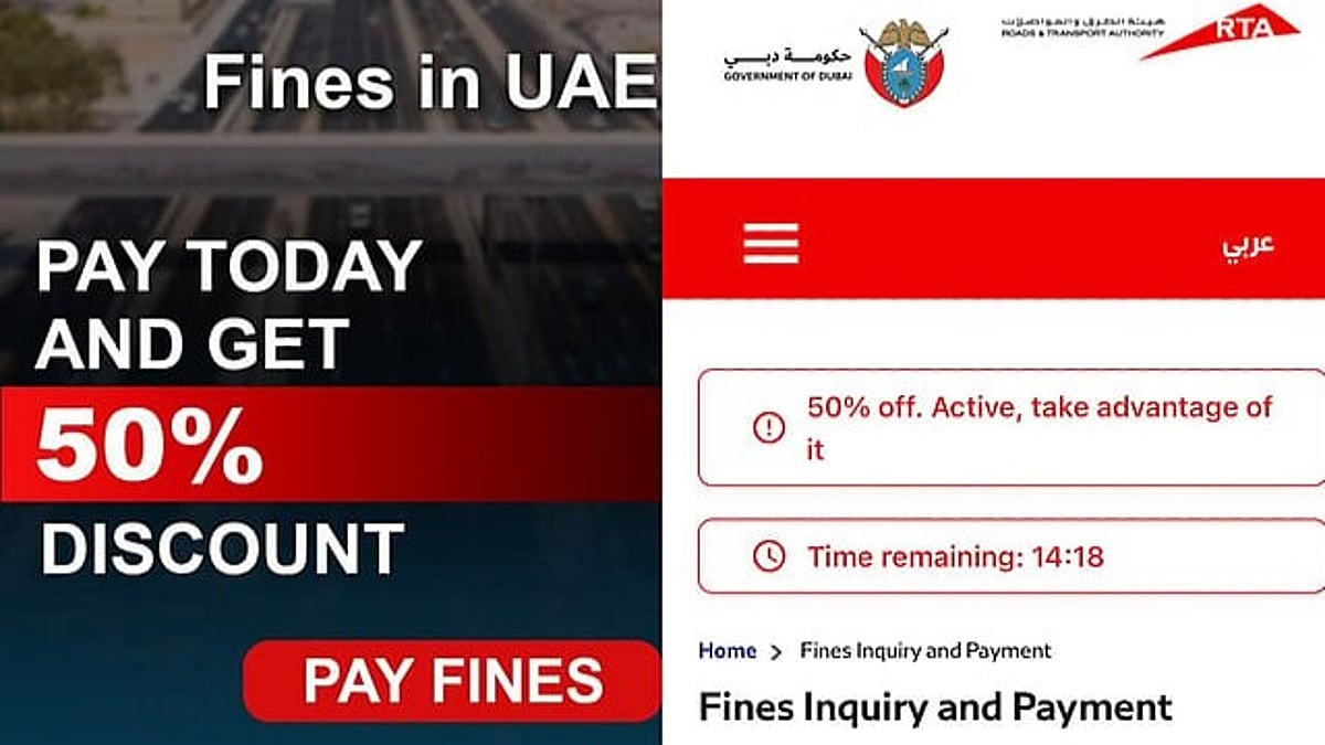 കഴിഞ്ഞ ദിവസങ്ങളിൽ ദുബൈയിൽ താമസിക്കുന്നവർക്ക് ഇ-മെയിലുകൾ വഴിയും സോഷ്യൽ മീഡിയയിലൂടെയും ഒരു പരസ്യം ലഭിച്ചിരുന്നു. “ഇന്ന് ഓൺലൈൻ വഴി നിങ്ങളുടെ പിഴത്തുക അടച്ചാൽ ആർ ടി എ 50% വരെ ഇളവ് നൽകും ” എന്നാണ് ലഭിക്കുന്ന സന്ദേശം. ഈ പരസ്യം ദുബൈ സ്വദേശിയായ ഒരാൾ സോഷ്യൽ മീഡിയയിൽ പങ്കു വെയ്ക്കുകയും ഇക്കാര്യത്തിൽ വ്യക്തത വരുത്താൻ ആർ ടി എയോട് ആവശ്യപ്പെടുകയും ചെയ്തിരുന്നു.