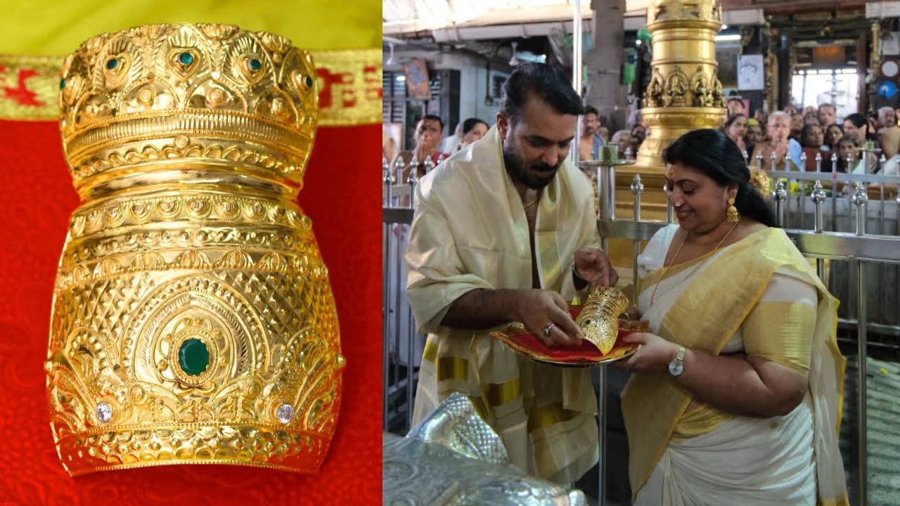 തൃശൂർ: ഗുരുവായൂരപ്പന് വഴിപാടായി 174 ഗ്രാം തൂക്കം വരുന്ന സ്വർണ്ണക്കിരീടം സമർപ്പിച്ച് ജ്വല്ലറി മാനുഫാക്ചറിങ്ങ് സ്ഥാപന ഉടമ. തൃശൂരിലെ പ്രമുഖ ജ്വല്ലറി മാനുഫാക്ചറിങ്ങ് സ്ഥാപനമായ അജയ് ആൻറ് കമ്പനി ഉടമയായ അജയകുമാർ സി.എസിന്റെ ഭാര്യ സിനി അജയകുമാറാണ് സ്വർണ്ണക്കിരീടം സമർപ്പിച്ചത്. ഇന്ന് ഉച്ചയ്ക്ക് ശേഷം ക്ഷേത്ര നടതുറന്ന നേരത്തായിരുന്നു സമർപ്പണം കൊടിമര ചുവട്ടിൽ നടന്ന ചടങ്ങിൽ ദേവസ്വം അഡ്മിനിസ്ട്രേറ്റർ ഒ.ബി അരുൺകുമാർ സ്വർണ്ണക്കിരീടം ഏറ്റുവാങ്ങി. ചടങ്ങിൽ അജയകുമാറിന്റെ കുടുംബത്തിനൊപ്പം ക്ഷേത്രം ഡപ്യൂട്ടി അഡ്മിനിസ്ട്രേറ്റർ പ്രമോദ് കളരിക്കൽ, സി എസ് ഒ മോഹൻകുമാർ എന്നിവരും പങ്കെടുത്തു.
