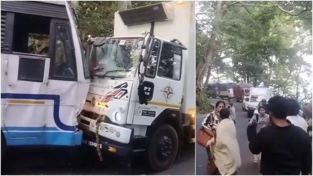 കോഴിക്കോട്: താമരശ്ശേരി ചുരത്തിൽ കെഎസ്ആർടിസി ബസും കണ്ടെയ്നർ ലോറിയും കൂട്ടിയിടിച്ച് അപകടം. ആറാം വളവിനും ഏഴാം വളവിനും ഇടയിലാണ് അപകടമുണ്ടായത്. ബസ് യാത്രക്കാരായ 38 പേർക്ക് അപകടത്തിൽ പരിക്കേറ്റു.16 പേരെ കോഴിക്കോട് മെഡിക്കൽ കോളേജിലേക്കും, 20 പേരെ താമരശ്ശേരി താലൂക്ക് ആശുപത്രിയിലേക്കും രണ്ട് പേരെ സ്വകാര്യ ആശുപത്രിയിലേക്കും മാറ്റി. ആരുടെയും പരിക്ക് സാരമുള്ളതല്ല. ബസിന്റെ ബ്രേക്ക് നഷ്ടമായതാണ് അപകടത്തിന് കാരണമായതെന്നാണ് വിവരം. അപകടത്തെ തുടർന്ന് ചുരത്തിൽ ഭാഗികമായി ഗതാഗതം തടസപ്പെട്ടു. ഏറെ നേരത്തെ ശ്രമത്തിനൊടുവിലാണ് ക്രെയിൻ എത്തിച്ച് ചുരത്തിൽ കുടുങ്ങിയ വാഹനങ്ങൾ മാറ്റിയത്.