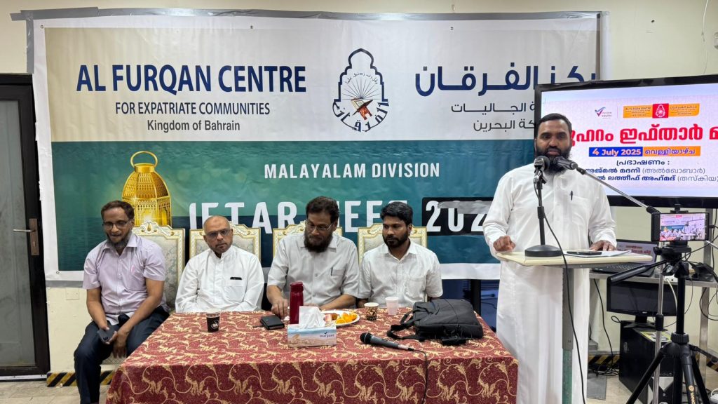 മനാമ: അൽ ഫുർഖാൻ സെന്റർ പഠന ക്യാമ്പ് സംഘടിപ്പിച്ചു. അൽ ഫുർഖാൻ ഹാളിൽ വെച്ച് സംഘടിപ്പിച്ച പഠന ക്യാമ്പിൽ വിവിധ സെഷനുകളിലായി നടന്ന പരിപാടിയിൽ മുഹറം നാം അറിയേണ്ടത് എന്ന വിഷയം അജ്മൽ മദനി അൽകോബാറും തസ്കിയത്ത് ചിന്തകൾ അബ്ദുൽ ലത്വീഫ് അഹ്മദും അവതരിപ്പിച്ചു. സൂംബ വിവാദം ഒരു വിശകലനം എന്ന ചച്ചാ സെഷൻ മൂസാ സുല്ലമി നിയന്ത്രിച്ചു. അൽ ഫുർഖാൻ സെന്റർ മലയാളം ഡിവിഷൻ പ്രസിഡന്റ് സൈഫുല്ല ഖാസിം അധ്യക്ഷത വഹിച്ചു. ജനറൽ സെക്രട്ടറി സുഹൈൽ മേലടി ആമുഖവും ട്രാഷറർ നൗഷാദ് പിപി സ്കൈ സമാപനവും നടത്തി. പഠന ക്യാമ്പിനും തുടർന്ന് നടന്ന ഇഫ്താറിനും അബ്ദുസ്സലാം ബേപ്പൂർ, ബഷീർ മദനി, മുജീബു റഹ്മാൻ എടച്ചേരി, അനൂപ് തിരൂർ, അബ്ദുൽ ബാസിത്ത്, മുഹമ്മദ് ഷാനിദ്, ഇഖ്ബാൽ കാഞ്ഞങ്ങാട്, മുബാറക് വികെ, ഹിഷാം കെ ഹമദ്, മുസ്ഫിർ മൂസ, മായൻ കോയിലാണ്ടി, യൂസുഫ് കെപി, അബ്ദുല്ല പുതിയങ്ങാടി, സമീൽ പി, നസീഫ് ടിപി, നവാഫ് ടിപി, സബീല യൂസുഫ് എന്നിവർ നേതൃത്വം നൽകി.