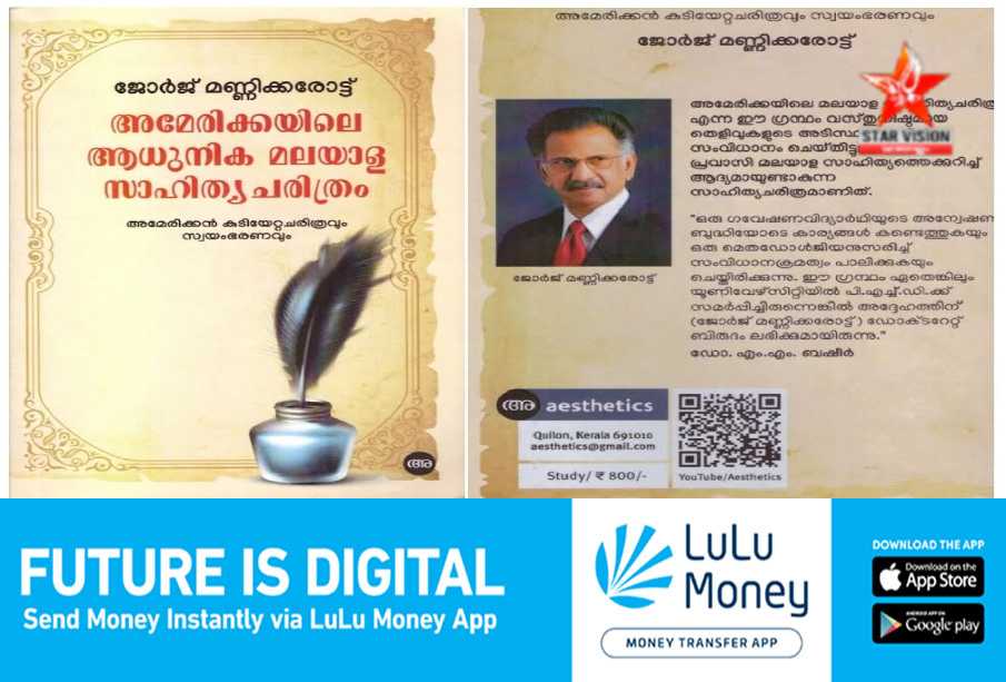 ഹൂസ്റ്റണ്: അമേരിക്കയില് അധിവസിക്കുന്ന പ്രസിദ്ധ മലയാള ഭാഷാസാഹിത്യകാരനും ചരിത്രകാരനുമായ ജോര്ജ് മണ്ണിക്കരോട്ട് രചിച്ച ‘അമേരിക്കയിലെ ആധുനിക മലയാള സാഹിത്യചരിത്രം’ പ്രസിദ്ധീകരിച്ചു. വടക്കെ അമേരിക്കയ്ക്കു പുരമെ കാനഡയിലെയും ആധുനിക മലയാള സാഹിത്യ ചരിത്രം ഈ ബൃഹത്തായ ഗ്രന്ഥത്തില് ഉള്പ്പെടുത്തിയിരിക്കുന്നു. അമേരിക്കയില് ആദ്യമായി 2007ല് ‘അമേരിക്കയിലെ മലയാള സാഹിത്യ ചരിത്രം’ എന്ന ഒരു ചരിത്ര പുസ്തകം ജോര്ജ് മണ്ണിക്കരോട്ട് രചിച്ചിരുന്നു. 2021ല് കൂടുതല് വസ്തുതകളും ചരിത്രവും വിവരണങ്ങളുമായി 400 പേജുകള് വരുന്ന പരിഷ്കരിച്ച ഈ ചരിത്ര ഗ്രന്ഥത്തിന് ‘അമേരിക്കയിലെ ആധുനിക മലയാള സാഹിത്യ ചരിത്രം’ എന്ന് നാമകരണം ചെയ്യപ്പെട്ടിരിക്കുന്നു. കാരണം ഈ പുസ്തകത്തില് ആധുനിക ഡിജിറ്റല്, ഓണ്ലൈന്, ബ്ലോഗ് ഭാഷാസാഹിത്യകാരന്മാരെയും, അവരുടെ രചനാചരിത്രങ്ങളെയും സമഗ്രമായി പ്രതിപാദിച്ചിരിക്കുന്നു, കൂട്ടിച്ചേര്ത്തിരിക്കുന്നു എന്നുള്ളതാണ്. 2007ല് നിന്ന് 2021 വരെയുണ്ടായ ഭാഷാസാഹിത്യത്തിലെ മാറ്റങ്ങളും, പരിണാമങ്ങളും ഈ പുതിയ ചരിത്ര പുസ്തകത്തില് ചേര്ത്തിട്ടുണ്ട്.