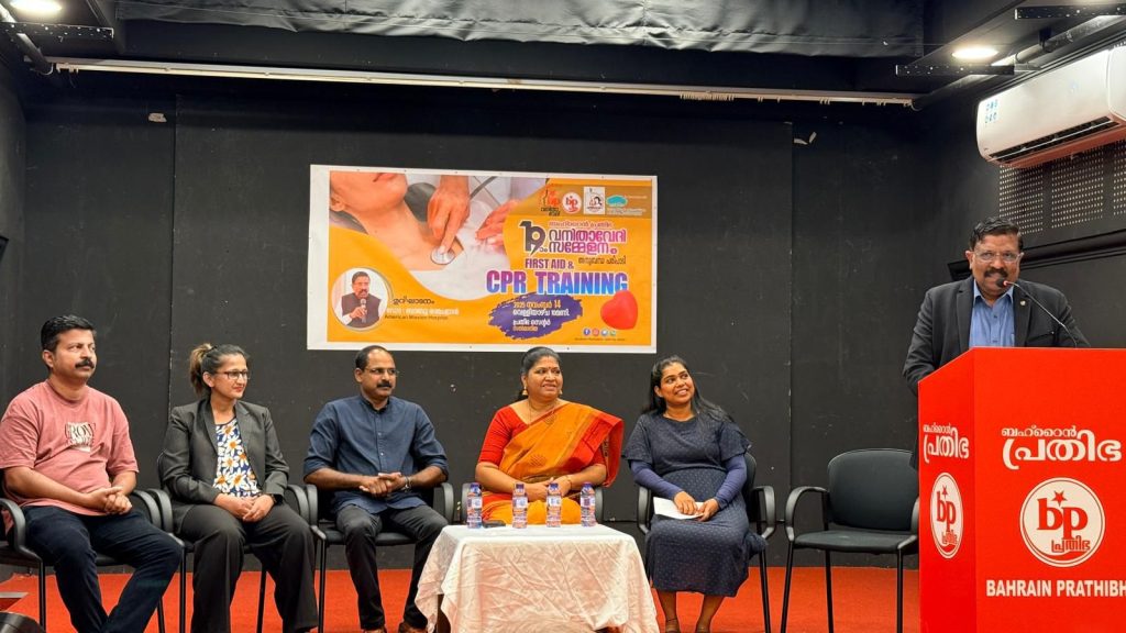 ബഹ്റൈൻ പ്രതിഭ വനിതാ വേദിയുടെ പത്തൊമ്പതാം കേന്ദ്രസമ്മേളന അനുബന്ധ പരിപാടികളിൽ ഒന്നായ CPR ട്രെയിനിങ് പ്രതിഭാ സെന്ററിൽ വച്ച് നടന്നു. വനിതാവേദി സെക്രട്ടറി റീഗ പ്രദീപ് സ്വാഗതം പറഞ്ഞ ചടങ്ങിൽ സിപിആർ ട്രെയിനിങ് പരിപാടിയുടെ കൺവീനർ ദിവ്യ രഞ്ജിത്ത് അധ്യക്ഷത വഹിച്ചു. ഐസിആർഎഫ് മുൻ ചെയർമാൻ ഡോ ബാബു രാമചന്ദ്രൻ സിപിആർ ട്രെയിനിങ് ഉദ്ഘാടനം ചെയ്തു. അമേരിക്കൻ മിഷൻ ഹോസ്പിറ്റലിലെ ഫ്രീഡ എമിലിയ, ബിൻസൺ മാത്യു എന്നിവർ സിപിആർ പരിശീലനത്തിനു നേതൃത്വം നൽകി.