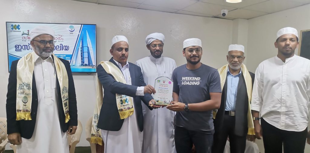 തുടർച്ചയായി അഞ്ചു വർഷം ഹാദിയ വുമൺസ് അക്കാദമിയുടെ അമീറായായി സേവനം ചെയ്ത് മികച്ച സംഘാടനം നിർവ്വഹിച്ചതിനുള്ള അംഗീകരമായി ഐ സി എഫ് മനാമ സെൻട്രൽ കമ്മറ്റി നൽകിയ സ്നേഹോപഹാരം ഐ സി എഫ് ഇന്റർ നാഷണൽ സെക്രട്ടറി നിസാർ കാമിൽ സഖാഫിയിൽ നിന്ന് മകൻ സബിൻ സലിം ഏറ്റു വാങ്ങി. ഐ സി എഫ് നേതാക്കളായ എം സി അബ്ദുൽ കരീം, കെ. സി സൈനുദ്ധീൻ സഖാഫി, അബൂബക്കർ ലത്തീഫി, വിപികെ അബൂബക്കർ ഹാജി എന്നിവർ പരിപാടിയിൽ സന്നിഹിതരായി.