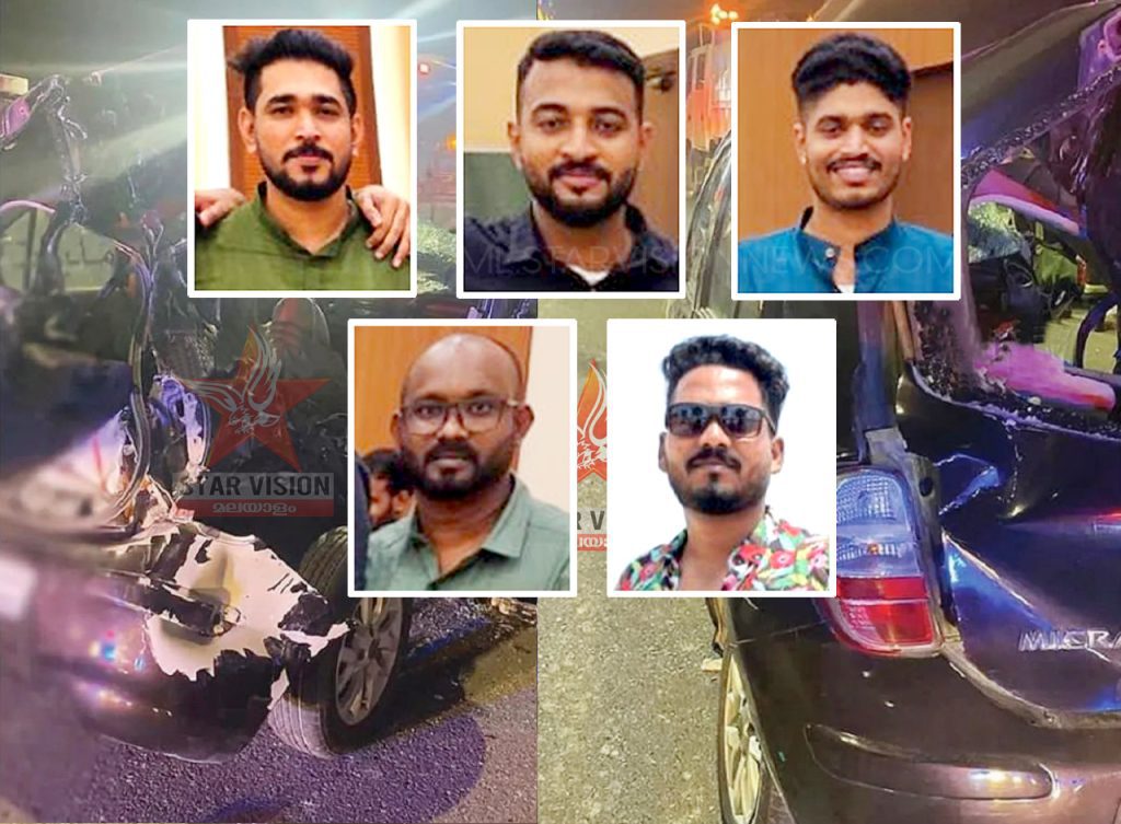 കോഴിക്കോട് സ്വദേശി വി.പി മഹേഷ്, പെരിന്തൽമണ്ണ സ്വദേശി ജഗത് വാസുദേവൻ, തൃശൂർ ചാലക്കുടി സ്വദേശി ഗൈദർ ജോർജ്, തലശ്ശേരി സ്വദേശി അഖിൽ രഘു, തെലങ്കാന സ്വദേശി സുമൻ രാജണ്ണ എന്നിവരാണ് മരിച്ചത്. സൽമാബാദിൽ നിന്ന് മുഹറഖിലേക്ക് വരുകയായിരുന്ന കാറാണ് അപകടത്തിൽ പെട്ടത്. സൽമാബാദ് ഗൾഫ് എയർ ക്ലബ്ബിൽ നിന്ന് ഓണാഘോഷ പരിപാടി കഴിഞ്ഞു മടങ്ങവേയായിരുന്നു അപകടം.