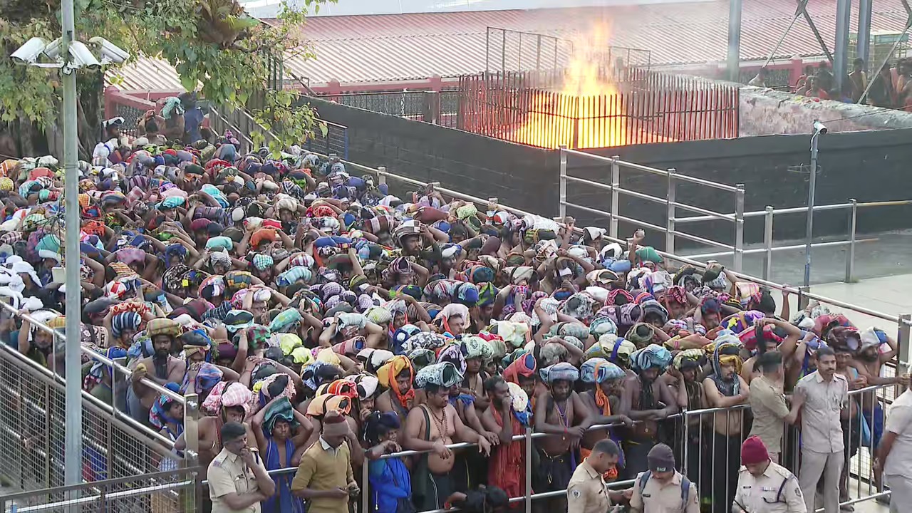 സന്നിധാനത്തെ തിരക്ക് കൂടി പരിഗണിച്ചാകും പമ്പയിൽ നിന്ന് തീർത്ഥാടകാരെ കടത്തി വിടുക. ഇന്നലെ ശരാശരി 6 മണിക്കൂർ വരെ കാത്തു നിന്ന ശേഷമാണ് സ്വാമിമാർ ദർശനം നടത്തിയത്. ദിനംപ്രതി 90,000 പേർക്കാണ് മല കയറാൻ അവസരമുള്ളത്. സത്രം വഴി, കാനന പാതയിലൂടെയും ഇന്നലെ മുതൽ ഭക്തരെ കടത്തി വിടുന്നുണ്ട്. ആകെ പതിനെട്ടു മണിക്കൂർ ആണ് ശബരിമലയിൽ ദർശന സമയം.