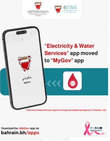 മനാമ: ബഹ്റൈനില് ഇലക്ട്രിസിറ്റി ആന്റ് വാട്ടര് സര്വീസസ് ആപ്പ് ഒക്ടോബര് 23 മുതല് ഔദ്യോഗികമായി നിര്ത്തലാക്കുമെന്ന് ഇന്ഫര്മേഷന് ആന്റ് ഇ-ഗവണ്മെന്റ് അതോറിറ്റിയും (ഐ.ജി.എ) ഇലക്ട്രിസിറ്റി ആന്റ് വാട്ടര് അതോറിറ്റിയും (ഇ.ഡബ്ല്യു.എ) അറിയിച്ചു.