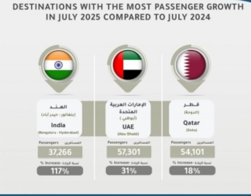 മനാമ: ഈ വര്ഷം ജൂലൈ മാസത്തില് ബഹ്റൈന് വ്യോമയാന മേഖല ശ്രദ്ധേയമായ വളര്ച്ച കൈവരിച്ചു. ഗതാഗത, ടെലികമ്യൂണിക്കേഷന് മന്ത്രാലയം പുറത്തുവിട്ട കണക്കനുസരിച്ച് കഴിഞ്ഞ വര്ഷം ഇതേ കാലയളവിനെ അപേക്ഷിച്ച് യാത്രക്കാരുടെ എണ്ണം, വിമാന സര്വീസുകള്, ചരക്കു കടത്ത് എന്നിവയിലെല്ലാം ഗണ്യമായ വളര്ച്ച കൈവരിച്ചിട്ടുണ്ട്.
