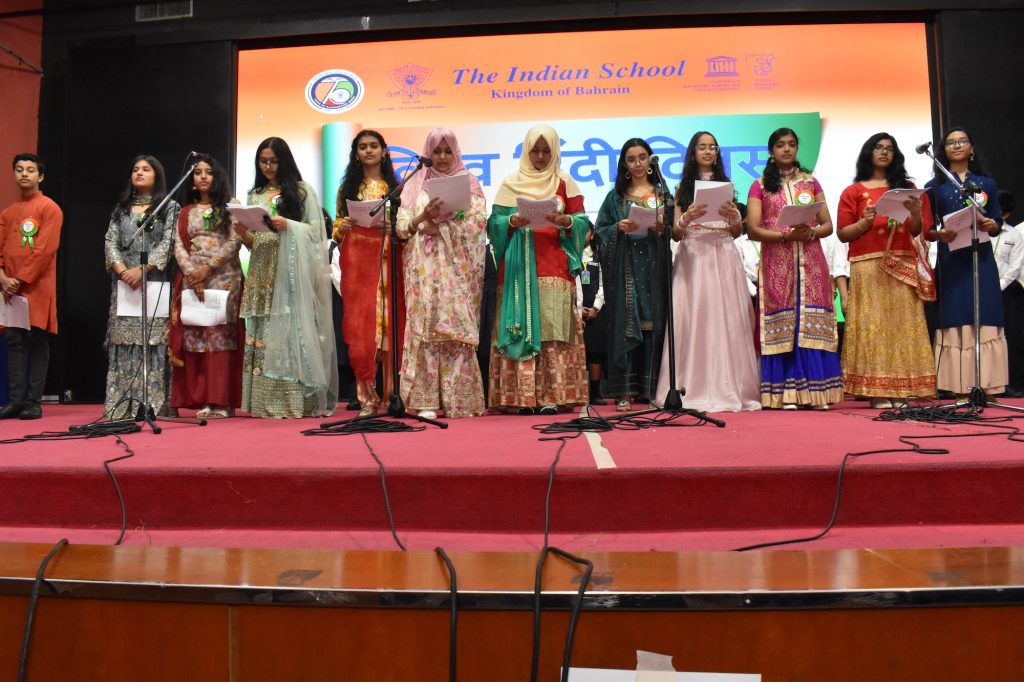 മാഹാ അലി സ്വാഗതം ആശംസിച്ചു. സ്റ്റാഫ് പ്രതിനിധി പാർവതി ദേവദാസ്, പ്രധാന അധ്യാപികമാരായ (ആക്ടിവിറ്റീസ്) ശ്രീകല ആർ. നായർ, സലോണ പയസ്, വകുപ്പ് മേധാവി ബാബു ഖാൻ, മറ്റ് വിശിഷ്ടാതിഥികൾ എന്നിവർ പങ്കെടുത്തു. ന്യൂ മില്ലേനിയം സ്കൂൾ, ഏഷ്യൻ സ്കൂൾ, ന്യൂ ഇന്ത്യൻ സ്കൂൾ, ബഹ്റൈൻ ഇന്ത്യൻ സ്കൂൾ, ന്യൂ ഹൊറൈസൺ സ്കൂൾ, ഇബ്നു അൽ ഹൈതം ഇസ്ലാമിക് സ്കൂൾ എന്നിവ ഉൾപ്പെടെയുള്ള സിബിഎസ്ഇ സ്കൂളുകളിൽ നിന്നുള്ള ആവേശകരമായ പങ്കാളിത്തം ഇന്റർ-സ്കൂൾ മത്സരങ്ങളിൽ ദൃശ്യമായിരുന്നു. ഹിന്ദി ഭാഷയുടെ സമ്പന്നതയും സാംസ്കാരിക ആഴവും പ്രതിഫലിപ്പിക്കുന്ന ദേശഭക്തി ഗാനങ്ങൾ, നാടോടി നൃത്തങ്ങൾ എന്നിവയും പരിപാടിയിൽ ഉണ്ടായിരുന്നു.
