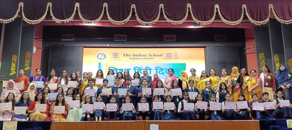 മനാമ: ഇന്ത്യൻ സ്കൂൾ വിശ്വഹിന്ദി ദിവസ് വർണ്ണശബളമായ പരിപാടികളോടെ ആഘോഷിച്ചു. നേരത്തെ നടന്ന ഇന്റർ-സ്കൂൾ മത്സരങ്ങൾ ഉൾപ്പെടുന്ന രണ്ട് ഘട്ട പരിപാടിയുടെ ഗ്രാൻഡ് ഫിനാലെയായിരുന്നു ആഘോഷം.