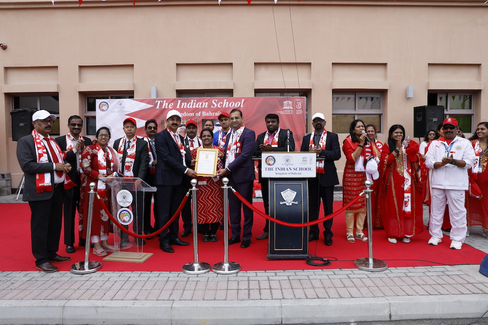 മനാമ: ഇന്ത്യൻ സ്കൂൾ ബഹ്റൈൻ (ഐഎസ്ബി) ജൂനിയർ വിംഗ് ഇന്ന് (ഡിസംബർ 15.2025) റിഫയിലെ കാമ്പസിൽ ഔദ്യോഗികമായി ഗോൾഡൻ ബുക്ക് ഓഫ് വേൾഡ് റെക്കോർഡിൽ (ജിബിഡബ്ല്യുആർ) പ്രവേശിച്ചു. സ്കൂൾ ഗ്രൗണ്ടിൽ ഏറെ അഭിമാനത്തോടെയും ദേശസ്നേഹത്തോടെയും നടന്ന ബഹ്റൈൻ ദേശീയ ദിനാഘോഷ വേളയിലാണ് ട്രിപ്പിൾ റെക്കോർഡുകൾ നേടിയത്. ഇന്ത്യൻ സ്കൂൾ ഈ ഒരു ദിവസം വിജയകരമായി സ്ഥാപിച്ച മൂന്ന് ലോക റെക്കോർഡുകൾ ഇവയാണ്:
