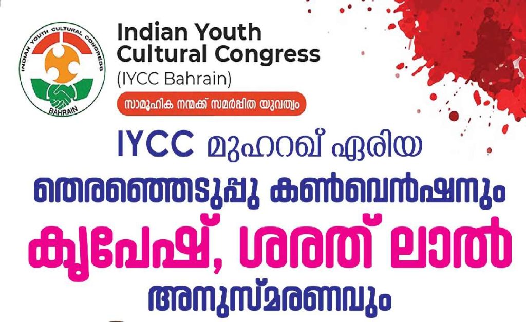 മനാമ: ഐ വൈ സി സി എട്ടാമത് വാർഷിക പുനസംഘടന നടപടികളുടെ ഭാഗമായി സംഘടിപ്പിക്കുന്ന മുഹറഖ് ഏരിയ തെരഞ്ഞെടുപ്പു കൺവെൻഷനും കൃപേഷ് ശരത് ലാൽ അനുസ്മരണവും ഫെബ്രുവരി 17