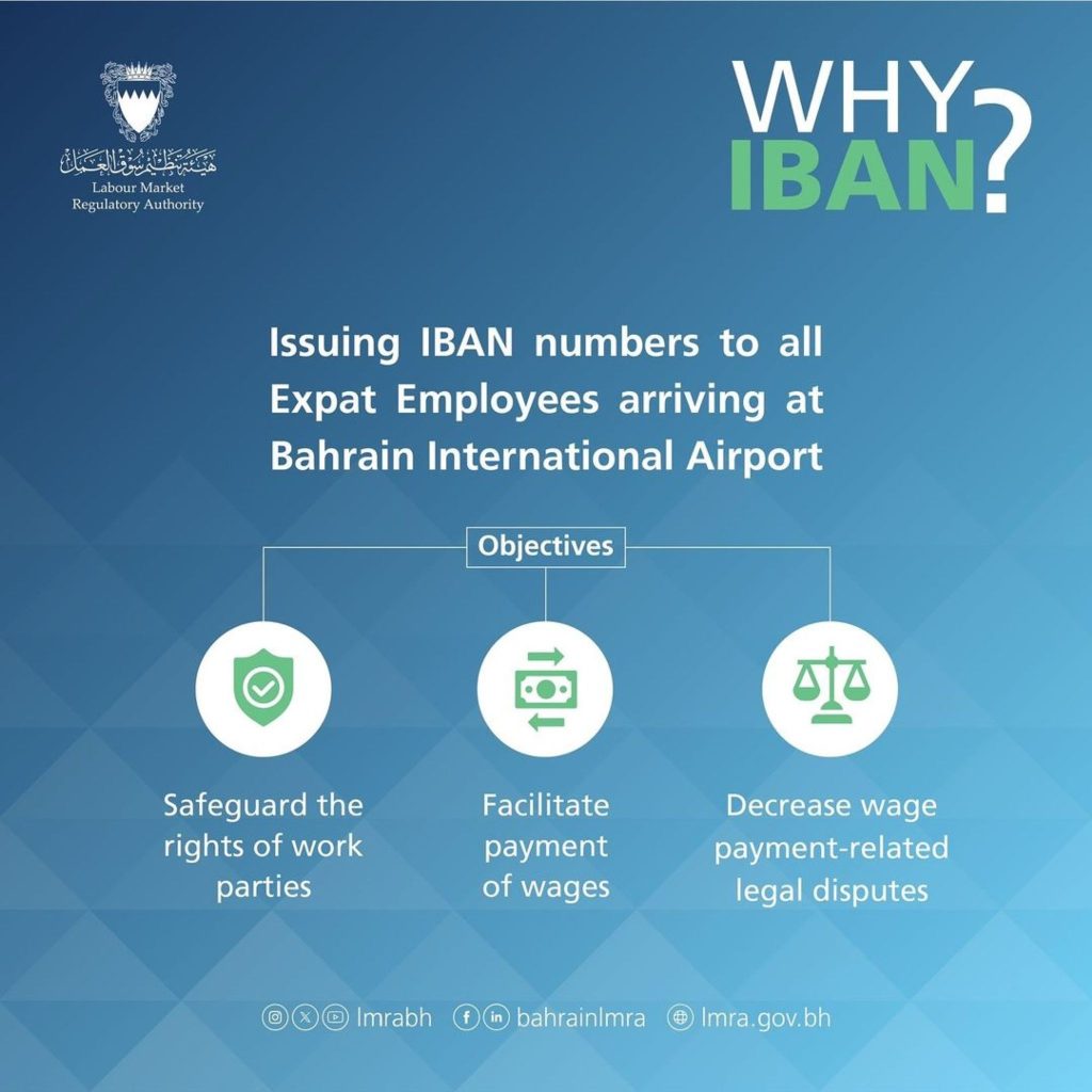 മനാമ: ബഹ്റൈനില് വരുന്ന പ്രവാസി ജീവനക്കാര്ക്കെല്ലാം സെന്ട്രല് ബാങ്ക് ഓഫ് ബഹ്റൈനുമായും സ്വകാര്യ മേഖലയുമായും സഹകരിച്ച് ഇന്റര്നാഷണല് ബാങ്ക് അക്കൗണ്ട് നമ്പര് (ഐബാന്) നല്കുന്നതിന് സൗകര്യമൊരുക്കാന് തുടങ്ങിയതായി ലേബര് മാര്ക്കറ്റ് റെഗുലേറ്ററി അതോറിറ്റി (എല്.എം.ആര്.എ) അറിയിച്ചു.
