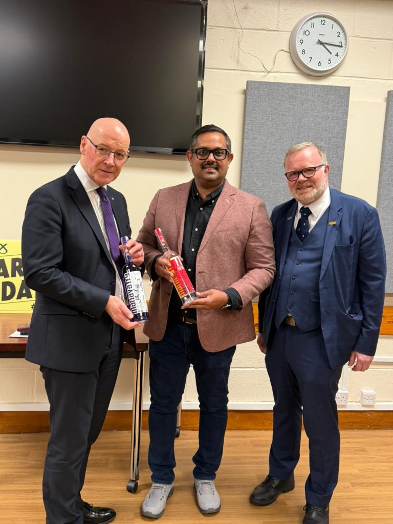 സ്കോട്ട്ലാൻഡ്: 2026-ൽ നടക്കാനിരിക്കുന്ന സ്കോട്ട്ലൻഡ് പാർലമെൻ്റ് തെരഞ്ഞെടുപ്പിന് മുന്നോടിയായി എഡിൻമ്പ്രയിൽ നടന്ന ഭരണകക്ഷിയായ സ്കോട്ടിഷ് നാഷണൽ പാർട്ടിയുടെ (എസ് എൻ പി) കാൻഡിഡേറ്റ് അഡോപ്ഷൻ ആൻഡ് ഫണ്ട് റെയ്സിംഗ് കൺവെൻഷനിലാണ് അപ്രതീക്ഷിതമായൊരു ‘മലയാളി താരം’ ഏവരുടെയും മനം കവർന്നത്. സ്ഥാനാർത്ഥികൾക്കും രാഷ്ട്രീയ ചർച്ചകൾക്കുമൊപ്പം സ്കോട്ടിഷ് നാഷണൽ പാർട്ടിയുടെ വേദികളിൽ ഇപ്പോൾ പ്രധാന സംസാരവിഷയം ‘മണവാട്ടി’ എന്ന പേരിൽ ലേലത്തിൽ വെച്ച ഒരു മദ്യക്കുപ്പിയാണ്.