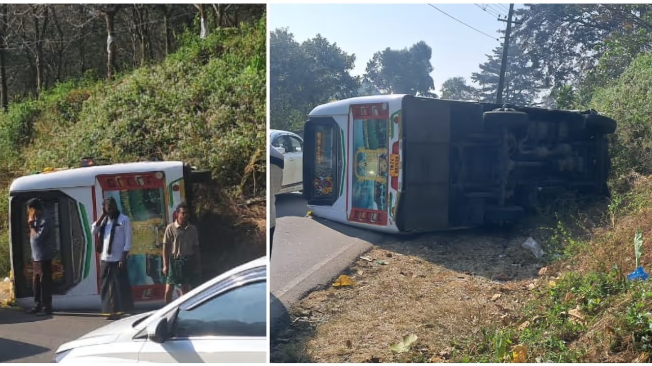 കൊടികുത്തി : ഇടുക്കി കൊടികുത്തിയിൽ ശബരിമല തീർത്ഥാടകർ സഞ്ചരിച്ചിരുന്ന മിനി ബസ് നിയന്ത്രണം വിട്ട് മറിഞ്ഞ് മൂന്ന് പേർക്ക് പരിക്കേറ്റു. തമിഴ്നാട്ടിലെ സേലത്ത് നിന്ന് ശബരിമല ദർശനത്തിനായി എത്തിയ സംഘമാണ് അപകടത്തിൽപ്പെട്ടത്. യാത്രയ്ക്കിടെ നിയന്ത്രണം നഷ്ടപ്പെട്ട ബസ് റോഡിന്റെ വശത്തെ തിട്ടയിൽ ഇടിച്ച് മറിയുകയായിരുന്നു. അപകടത്തിൽ പരിക്കേറ്റവരെ ഉടൻ തന്നെ സമീപത്തെ ആശുപത്രിയിൽ പ്രവേശിപ്പിച്ചു. ആരുടെയും പരിക്ക് ഗുരുതരമല്ല.
