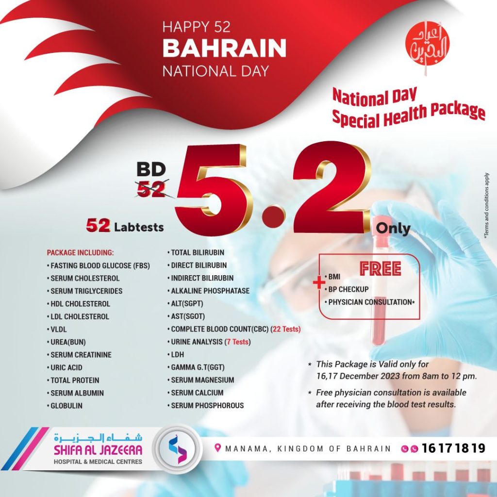 മനാമ: ബഹ്റൈന് ദേശീയ ദിനത്തിന്റെ ഭാഗമായി ഷിഫ അല് ജസീറ ആശുപത്രിയില് ഡിസംബര് 16, 17 തീയതികളില് പ്രത്യേക ഹെല്ത്ത് പാക്കേജ് ലഭ്യമായിരിക്കുമെന്ന് മാനേജ്മെന്റ് അറിയിച്ചു. പാക്കേജില് 52 ലാബ് ടെസ്റ്റുകള് വെറും 5.2 ദിനാറിന് ഉപഭോക്താക്കള്ക്ക് ലഭിക്കും. 52-ാം ദേശീയ ദിനത്തിന്റെ ബഹുമാനാര്ഥമാണ് 52 ടെസ്റ്റുകള് ഇത്രയും കുറഞ്ഞ തുകക്ക് നല്കുന്നതെന്ന് മാനേജ്മെന്റ് അറിയിച്ചു. രണ്ടുദിവസവും രാവിലെ എട്ടു മുതല് ഉച്ചക്ക് 12 വരെ മാത്രമായിരിക്കും ഈ പരിശോധനകള് ലഭിക്കുക. ഇതോടൊപ്പം ബിഎംഐ, ബിപി പരിശോധനയും ജനറല് ഡോക്ടറുടെ കണ്സള്ട്ടേഷനും സൗജന്യമായിരിക്കും. 16ന് ഡെന്റല് കണ്സള്ട്ടേഷനും സൗജന്യമായി നല്കുമെന്ന് മാനേജ്മെന്റ് അറിയിച്ചു.