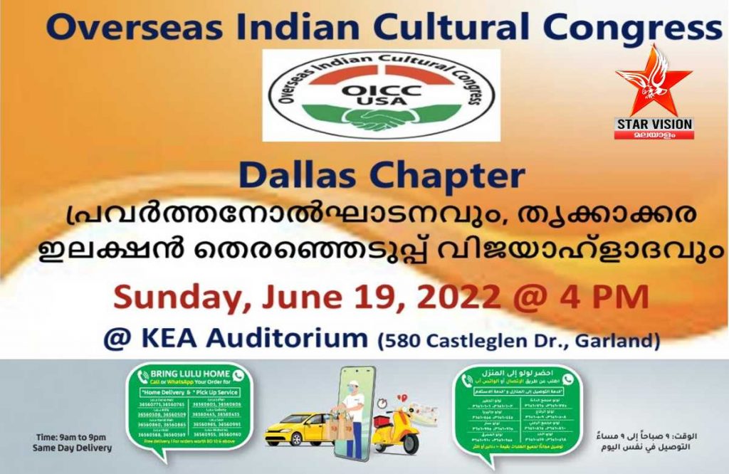 ഡാളസ്: ഓവര്സീസ് ഇന്ത്യന് കള്ച്ചറല് കോണ്ഗ്രസ് ഡാളസ് ചാപ്റ്റര് രൂപീകരിക്കുന്നതിനും, തൃക്കാക്കര ഉമാതോമസിന്റെ വിജയത്തില് ആഹ്ളാദം പങ്കുവയ്ക്കുന്നതിനും ജൂണ് 19 ഞായര് ഡാളസ്- ഫോര്ട്ട് വര്ത്തിലെ കോണ്ഗ്രസ് പ്രവര്ത്തകരുടെയും അനുഭാവികളുടെയും യോഗം ചേരുന്നു.