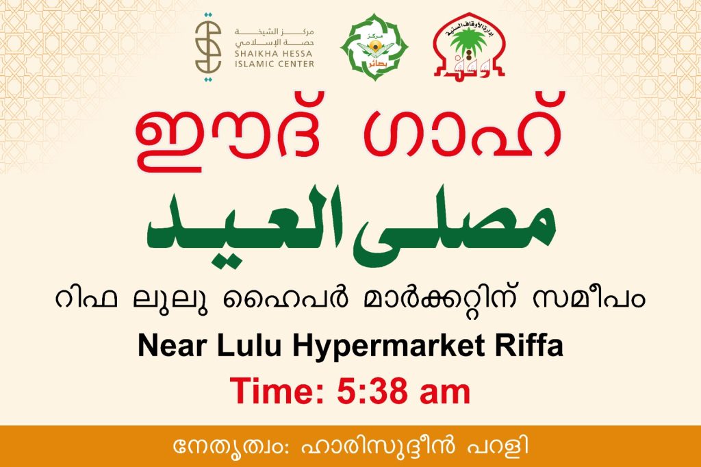 മനാമ: സുന്നി ഔഖാഫിന്റെ ആഭിമുഖ്യത്തിൽ റഫ ലുലു ഹൈപർ മാർക്കറ്റിന് മുൻവശമുള്ള സ്കൂൾ ഗ്രൗണ്ടിൽ നടക്കുന്ന ഈദ് ഗാഹിന്റെ ഒരുക്കങ്ങൾ പൂർത്തിയായതായി സംഘാടകർ അറിയിച്ചു. ഷൈഖ ഹിസ്സ ഇസ്ലാമിക് സെന്റർ, ബസാഇർ സെന്റർ എന്നിവയാണ് ഈദ് ഗാഹ് സംഘടിപ്പിക്കുന്നത് ഈദ് ഗാഹ് സംഘടിപ്പിക്കുന്നത്. രാവിലെ 5.38ന് നടക്കുന്ന ഈദ് നമസ്കാരത്തിന് ഹാരിസുദ്ദീൻ പറളി നേതൃത്വം നൽകും. സ്ത്രീകൾക്ക് പ്രത്യേക സൗകര്യമുണ്ടായിരിക്കുമെന്നും ഈദ് പ്രാർത്ഥനക്കായി വരുന്നവർ വുദു നിർവഹിച്ച് മുസല്ലയുമായി വരേണ്ടതാണെന്നും സംഘാടകർ അറിയിച്ചു. അബ്ദുറഹ്മാൻ മുള്ളങ്കോത്ത് ചെയർമാനും റഹീസ് കോർഡിനേറ്ററും നവാസ് ഓപി കൺവീനർ, ജോയിന്റ്. കൺവീനർമാർ: നസീഫ് ടിപി, റിഫ്ഷാദ്, മറ്റ് അംഗങ്ങൾ ആദം ഹംസ, ഹിഷാം, അലി ഉസ്മാൻ, നവാഫ് ടിപി, അൽ അമീൻ, ഓവി മൊയ്ദീൻ, സിദ്ദ്ഖ് നന്മണ്ട, സക്കീർ ചാത്തോത്ത്, ഇസ്മായിൽ മുയിപ്പോത്ത് എന്നീ അംഗങ്ങളടങ്ങുന്ന സ്വാഗത സംഘം രൂപികരിച്ചു.
