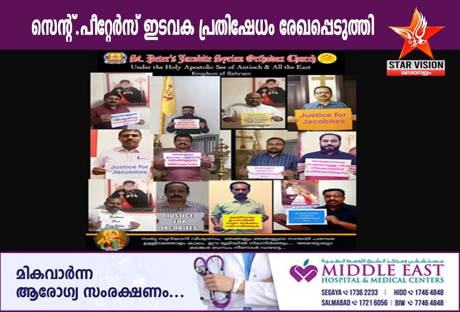 മനാമ: ഇരുട്ടിന്റെ മറവിൽ മുളന്തുരുത്തി, തിരുവാർപ്പ് പള്ളികളിൽ പോലീസ് സേന നടത്തിയ തേർവാഴ്ച, കിരാതവും മനുഷ്യ മനസ്സാക്ഷിയെ ഞെട്ടിക്കുന്നതുമായിരുന്നു. കോവിഡ് പ്രോട്ടോകോൾ അനുസരിച്ച് പള്ളിയിലും പള്ളി പരിസരങ്ങളിലും പ്രാർത്ഥനാ നിരതരായിരുന്ന നമ്മുടെ അഭിവന്ദ്യ തിരുമേനിമാരെയും വൈദികരെയും വിശ്വാസ സമൂഹത്തെയും കോവിഡ് 19 – ന്റെ എല്ലാ പ്രോട്ടോക്കോളും നഗ്നമായി ലംഘിച്ചു കൊണ്ട് പോലീസ് സേന ബലപ്രയോഗത്തിലൂടെയും പീഡനങ്ങളിലൂടെയും കീഴ്പ്പെടുത്തി പരിശുദ്ധ യാക്കോബായ സുറിയാനി സഭയുടെ ഹൃദയമായ മുളന്തുരുത്തി മാർത്തോമൻ യാക്കോബായ സുറിയാനി കത്തീഡ്രലും, തിരുവാർപ്പ് മർത്തുശ്മനി പള്ളിയും പിടിച്ചെടുത്ത പോലീസ് സേനയുടെ നടപടിയിൽ ബഹ്റൈൻ സെന്റ്.പീറ്റേഴ്സ് യാക്കോബായ സുറിയാനി പള്ളി വിശ്വാസ സമൂഹം പ്രതിക്ഷേധം രേഖപ്പെടുത്തി.