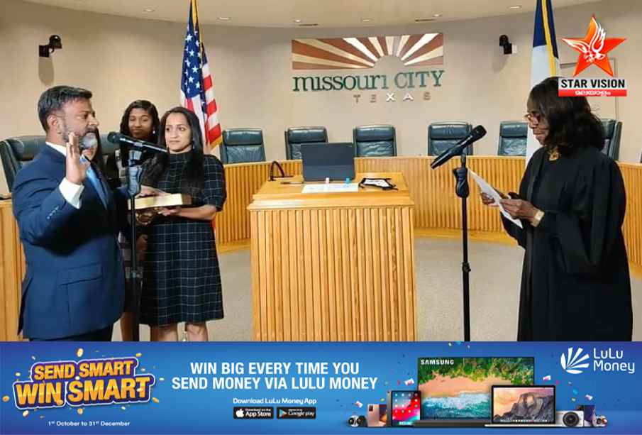 ഹൂസ്റ്റണ്: മിസോറി സിറ്റിയുടെ 12-ാമത് മേയറായി റോബിന് ഇലക്കാട്ട് സത്യപ്രതിജ്ഞ ചെയ്ത് ചുമതല ഏറ്റപ്പോള് മലയാളികള് ഏറെയുള്ള മിസോറി സിറ്റി മറ്റൊരു പ്രവാസി മലയാളി വിജയത്തിന്റെ ചരിത്രം എഴുതുകയായിരുന്നു. സിറ്റി ഹാളില് ഡിസംബര് 21-ാം തീയതി വൈകുന്നേരം ഏഴുമണിക്ക് ആഫ്രിക്കന് അമേരിക്കന് ആയ ജഡ്ജി ക്ലാരിസ് റാങ്കിന് യേറ്റ്സ് ആണ് സത്യവാചകം ചൊല്ലിക്കൊടുത്തത്. കോവിഡ് പ്രോട്ടോക്കോള് മൂലം കുറച്ച് പേര് മാത്രമാണ് ചടങ്ങില് പങ്കെടുത്തത്.