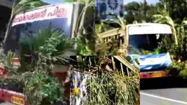 കൊച്ചി: എതിർദിശയിൽ വരുന്ന യാത്രക്കാരുടെ കാഴ്ച മറച്ച്, വാഴയും തെങ്ങോലകളും കൊണ്ട് അലങ്കരിച്ച് കെ.എസ്.ആർ.ടി.സി. കോതമംഗലത്ത് നിന്ന് അടിമാലിയിലേക്കായിരുന്നു ബസിലെ വിവാഹ യാത്ര. കെ.എസ്.ആർ.ടി.സി.യുടെ പേര് മാറ്റി ‘താമരാക്ഷൻ പിള്ള’ എന്നെഴുതിയ ബോർഡും ബസിന് മുന്നിൽ സ്ഥാപിച്ചിരുന്നു.