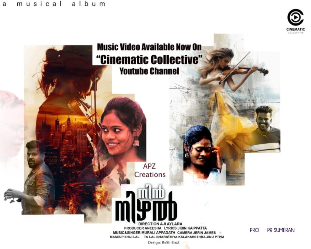 Share Facebook Twitter WhatsApp LinkedIn Pinterest Email Tumblr VKontakte കൊച്ചി :ഹൃദയങ്ങളിൽ അലിഞ്ഞ് ചേർന്ന പ്രണയവും അതിലേറെ നൊമ്പരമായ് കത്തിപ്പടർന്ന വിരഹവും സമ്മാനിക്കുന്ന “നിൻ നിഴൽ “എന്ന മ്യൂസിക്ക് ആൽബത്തിലെ “ വഴിപാതി അണയുന്നുവോ” എന്ന ഗാനം സിനിമാറ്റിക് കളക്റ്റീവ് യൂട്യൂബ് ചാനലിലൂടെ റിലീസായി.