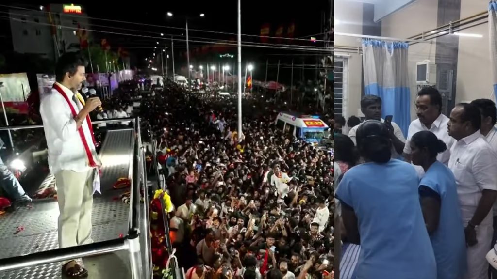അതേസമയം, കരൂര് ദുരന്തത്തിൽ ടിവികെ സംസ്ഥാന നേതാക്കള്ക്കെതിരെ കേസെടുത്തെങ്കിലും ടിവികെ അധ്യക്ഷൻ വിജയ്ക്കെതിരെ ഇതുവരെ കേസെടുത്തിട്ടില്ല. വിജയ്യെ തിടുക്കത്തിൽ അറസ്റ്റ് ചെയ്യേണ്ടെന്നാണ് ധാരണ. നാളെ കോടതിയിൽ സര്ക്കാര് വിഷയം ഉന്നയിച്ചേക്കും. കോടതി നിർദേശം വരെ കാത്തിരിക്കാമെന്നാണ് തീരുമാനം. കോടതി സ്വമേധയാ കേസെടുക്കാൻ സാധ്യതയുണ്ടെന്നും സർക്കാർ കണക്കുകൂട്ടുന്നു.വിജയ്ക്ക് അനുകൂലമായി സഹതാപ വികാരം ഉയർത്തേണ്ടെന്നാണ് ഇപ്പോഴത്തെ ധാരണ.